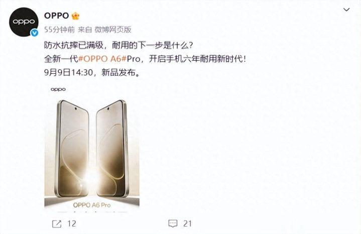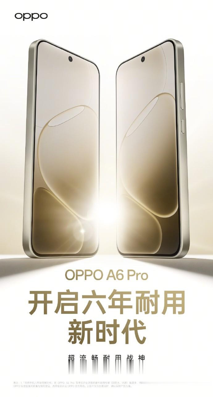 9月4日,OPPO今日正式官宣,OPPO A6 Pro将于9月9日14:30正式发布,官方表示将开启手机六年耐用新时代。